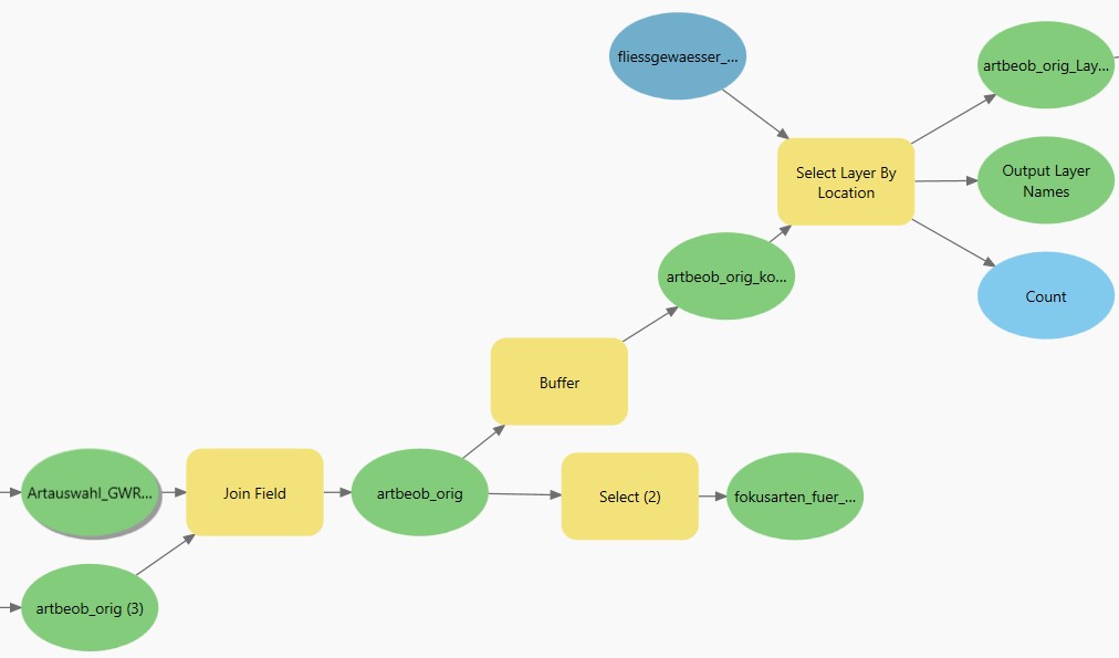 Ausschnitt aus dem Modell zur Auswahl der gewässergebundenen Arten im Kanton Zürich.