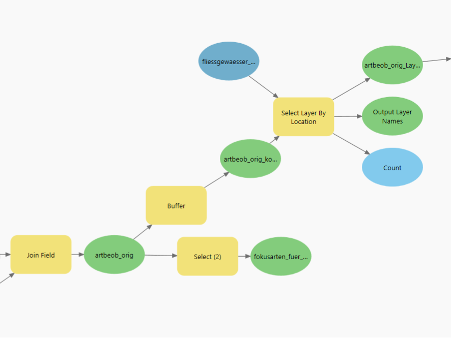 - GIS-Modellierung (Erstellung von Models zur Abfrage von räumlichen Bezügen und Berechnung diverser Kenngrössen)